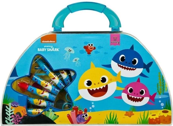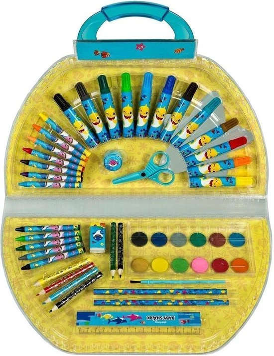 Maak de mooiste creaties met deze handigeBaby Shark kleurkoffer, 51-delig
