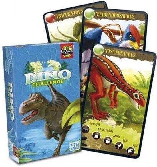 De Dino-challenge is geschikt voor kinderen vanaf zeven jaar. Ga de uitdaging aan met je tegenstander en leer alles over dinosauriers. Is jouw dino het grootst? Het snelst? Kies een eigenschap en win.