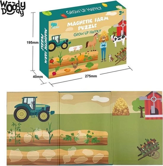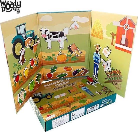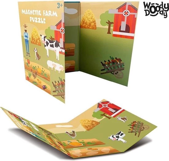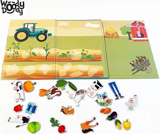 Uitklapbaar magnetisch puzzel bord met boerderijdiertjes en groenten