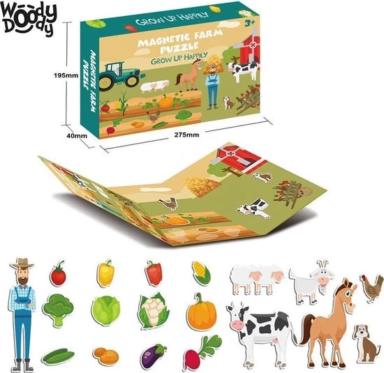 Op het magnetische bord staan verschillende silhouetten van desbetreffend puzzelstukje in de vorm van de geteelde groeten die op hun plaats moeten liggen. Zorg dat de magnetische stukjes vlak liggen zodat jouw zoontje of dochter precies kan inschatten welk puzzelstuk waar past. Het bord kan zowel staand of liggen gebruikt worden. Vanwege de magneetjes zullen deze altijd goed plakken!