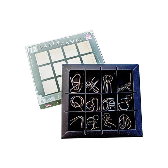Kun jij ook geen genoeg krijgen van puzzelen en denk je dat jij onze nieuwe Brain Games aankunt? Deze 12 unieke puzzels geven je uren spelplezier voor jezelf, familie en vrienden. Ontrafel de formule om de puzzels in en uit elkaar te halen. Elke puzzel geeft je een nieuwe uitdaging om je concentratievermogen, geheugen en focus te verbeteren. Klinkt makkelijk toch? Pas maar op, het is moeilijker dan het er uit ziet.