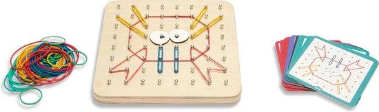 Maak de mooiste creaties met dit bord en de elastieken. Gebruik de bijgesloten kaarten als voorbeeld en bouw de partonen of leuke beesten na. Of laat je creativiteit de vrije loop en verzin zelf de mooiste creaties!