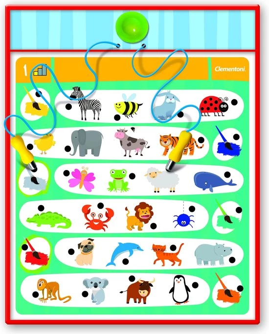 Dit educatieve speelgoed van Clementoni is voor kleuters vanaf 4 jaar! Op speelse wijze leert je kind van alles over kleuren, dieren, cijfers en nog veel meer! De 12 educatieve themakaarten bestaan in totaal uit 350 vragen. Luister naar de vraag en beantwoordt die door de kabels in de juiste gaatjes te prikken.