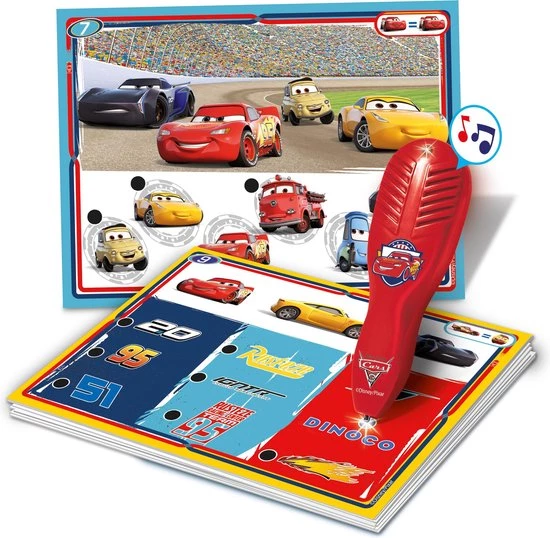 Eindeloos leerplezier met de interactieve pen, 24 kaarten en ruim 200 geïllustreerde quizzen in het gezelschap van de legendarische figuren uit Cars 2.