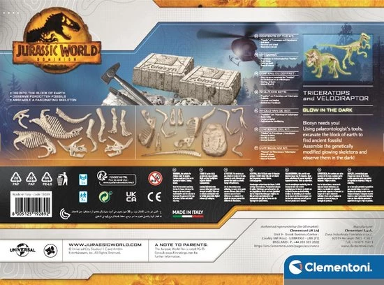 Clementoni Wetenschap & Spel, Jurassic World – 3, Dinosaurussen Set, Triceratops En Velociraptor, 6+ Jaar, 19289