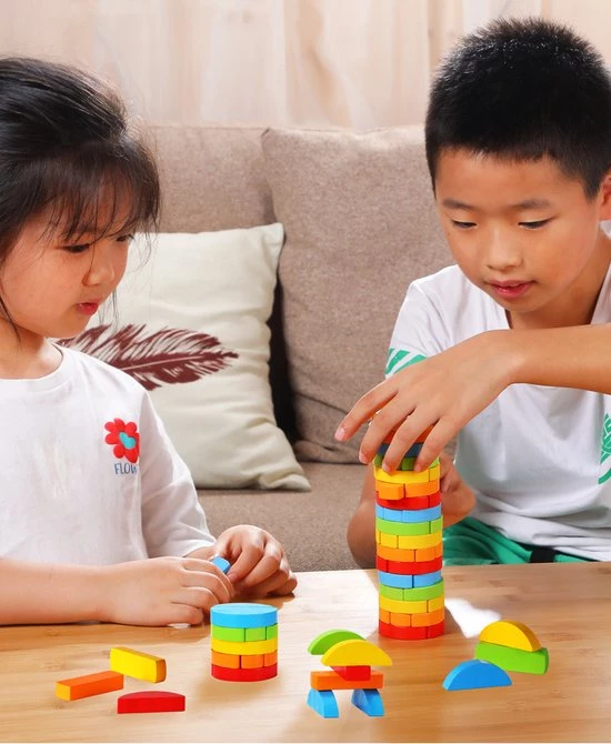 Dorjee Tumbling Tower – Educatief Houten Speelgoed – Multi Kleuren – 51 Blokjes