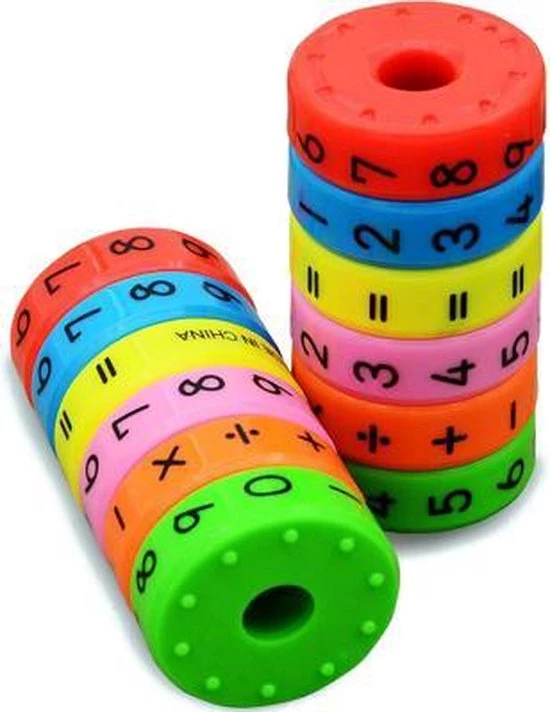 Magnetische cirkels in vrolijke kleuren waarmee allerlei sommen gemaakt kunnen worden: plus, min, keer en delen.