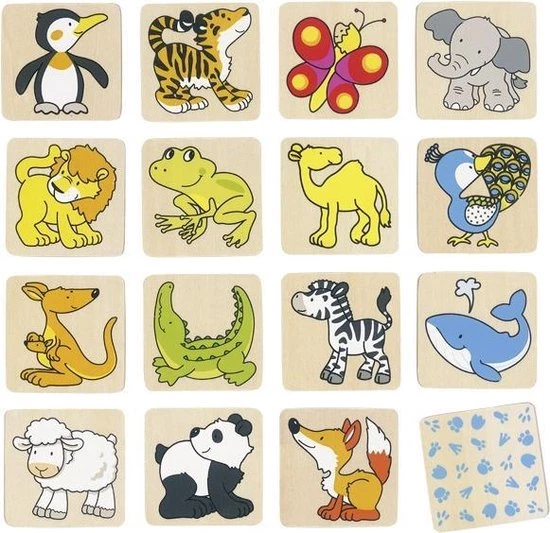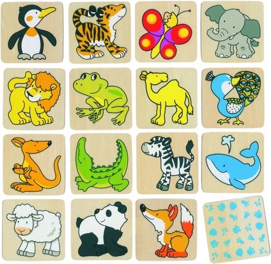 Leuke 32-delige Geheugenspel set in opbergdoosje. Met 16 setjes houten Geheugenspel steentjes.