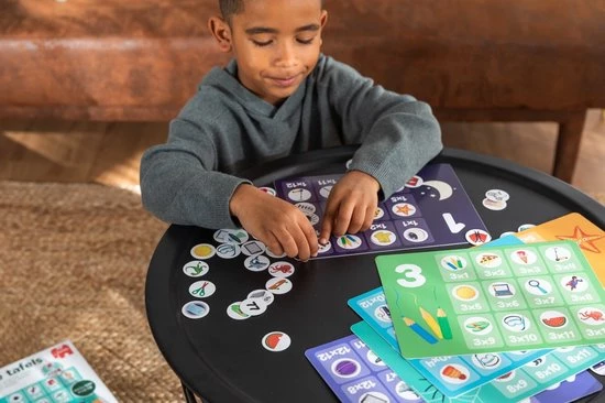 Leer met behulp van 2 spelletjes en de poster de tafels van 1 tot en met 10. Weet jij de antwoorden op de sommen? Zoek de juiste getal-fiches en leg ze op de kaart. Controleer je uitkomst door het fiche om te draaien. Komt het plaatje overeen? Dan is het antwoord goed!