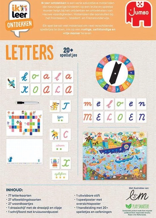 Ik leer Ontdekken Letters bevat 20+ spelletjes om op een rustige, zelfstandige en vrije manier te leren. Vanaf 4 jaar.