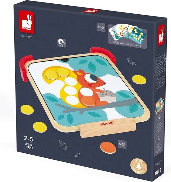 Dankzij deze magnetische ezel leert uw kind de kleuren door de tekeningen aan te vullen met behulp van tal van veelkleurige stippen! Grote stippen aangepast aan kleine handjes en een leistenen basis om zijn/haar creativiteit op te wekken! Geschikt voor kinderen van 2-5 jaar.