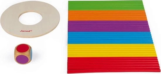 | Verpakkingsinhoud | Inhoud:, 36, stokjes, een, schijf, en, een, houten, dobbelsteen., Geschikt, voor, 2, tot, 6, spelers. |