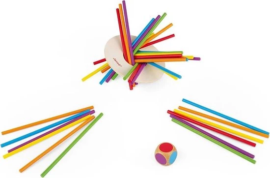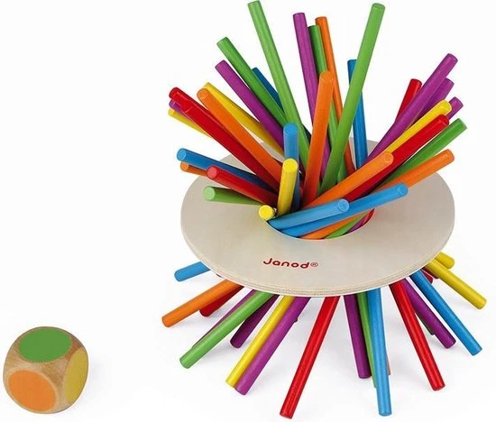 Het Game of Skill van Janod – Crazy Sticks is leuk houten speelgoed. Houd je hoofd koel en daag je tegenstanders uit door zoveel mogelijk stokken te verwijderen! Pas op – als de schijf de tafel raakt, is het spel voorbij! Deze game ontwikkelt fijne motoriek, strategie en kleurafstemming. Het bevat 36 stokjes, een schijf en een houten dobbelsteen. Geschikt voor 2 tot 6 spelers.
