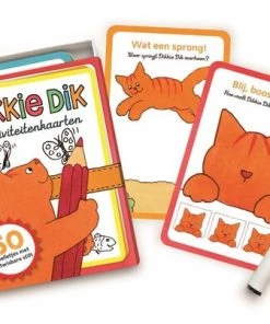 In dit vrolijke uitschuifdoosje zitten 25 Dikkie Dik-activiteitenkaarten. Op de kaarten staat op zowel de voor- als achterkant een leuk spelletje. Is het spelletje klaar, dan veeg je met het wissertje op de bijgevoegde stift gemakkelijk alles weer uit en kan iemand anders aan de slag. Met deze activiteitenkaarten hou je de kinderen urenlang zoet; ideaal voor in het restaurant of tijdens een lange rit in de auto!