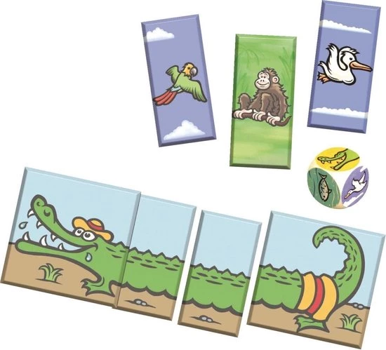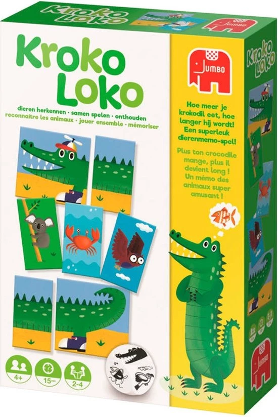 Kroko Loko heeft altijd grote trek. Het maakt hem niet uit wat voor dier het is, als hij maar te eten krijgt. En hoe meer hij eet, hoe langer hij wordt! Jij kunt Kroko Loko voeren door te onthouden waar de juiste dierenkaartjes liggen. Wie maakt de langste krokodil?