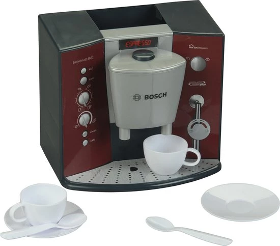 Klein Bosch koffiemachine Vul jouw speelgoedkeuken aan met dit leuke speelgoed-koffiezetapparaat en zet lekkere koffie voor je gasten! De geluiden en de vormgeving van dit apparaat maken het net echt! Specificaties: Geslacht: junior Kleur: rood Materiaal: kunststof Leeftijd: vanaf 3 jaar Batterijen: 2 x AA (niet inbegrepen)