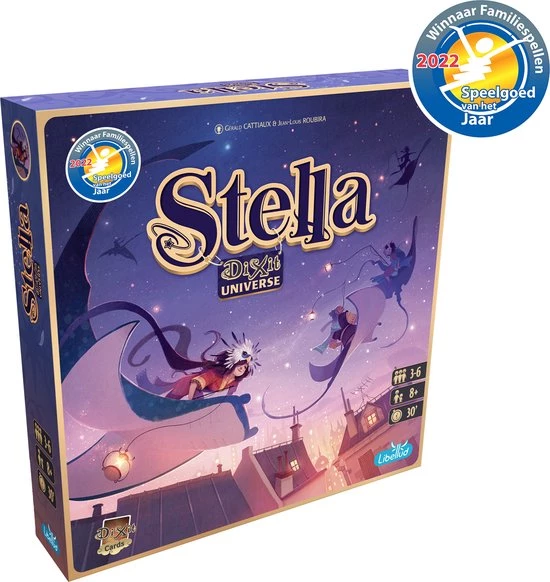 Bij Stella draait het om associaties bij idee?n en interpretaties bij beelden. Elke ronde moeten de spelers in het geheim verschillende Dixit kaarten aan ??n enkel willekeurig woord koppelen. Slaag je erin om dezelfde kaarten als de andere spelers te kiezen? Dan vorm je een ‘vonk’ die punten oplevert. Meer associaties leiden tot meer kansen op (super)vonken, maar wordt niet te hebberig.