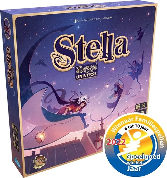 In het competitieve kaartspel Stella – Dixit Universe moeten spelers beelden interpreteren naar aanleiding van een gemeenschappelijk woord. Kies dezelfde kaart als de andere spelers om te winnen! Je moet risisco nemen, maar ook oppassen dat je niet in de val wordt gelokt. Heb jij het lef om de sterren achterna te jagen?
