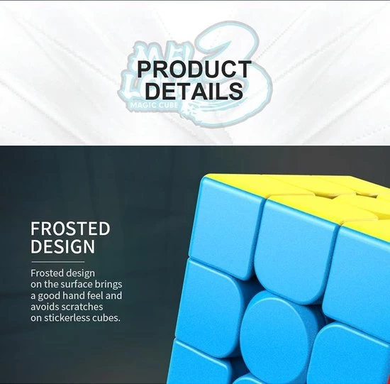 Het oppervlakte van de kubus is verruwd waardoor je goed grip hebt op de kubus en hij fijn aanvoelt. De kubus is stickerloos en krasbestendig ontworpen waardoor hij langer meegaat.