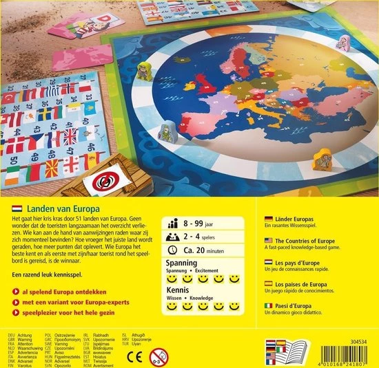 Het gaat hier kris kras door 51 landen van Europa. Geen wonder dat de toeristen langzaamaan het overzicht verliezen. De spelers helpen hen zich te ori?nteren, door te raden waar de toeristen zich momenteel bevinden. Hoe vroeger het juiste land wordt geraden, hoe meer punten dat oplevert. Wie Europa het beste kent en als eerste met zijn/haar toerist rond het speelbord is gereisd, is de winnaar.