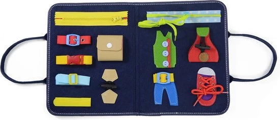 Je kind is nog nooit zo zoet geweest met het leren van allerlei verschillende belangrijke basisvaardigheden. Het ontwikkelen van de fijne motoriek is van groot belang voor jouw peuter. Door deze kleine handelingen te ontdekken en onder de knie te krijgen kan jouw kindje straks zijn knopen, veters, ritssluitingen zelfstandig doen. Een peuter maakt aan het begin van deze fase vaak ruige bewegingen, met deze educatieve map vol leuke uitdagingen zal het zijn fijne motoriek dusdanig ontwikkelen dat hij/zij deze leert te beheersen.