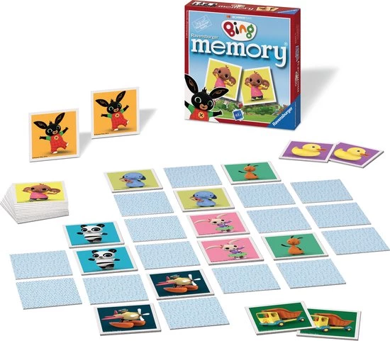 memory® van Ravensburger is al meer dan 50 jaar het meest geliefde eerste spel dat een kind met andere spelen kan… en hoe! Meestal winnen zij gemakkelijk van volwassenen. Daarnaast oefent het kind spelenderwijs belangrijke vaardigheden zoals concentratie en uithoudingsvermogen. Deze mini memory® met afbeeldingen van Bing Bunny is al geschikt vanaf 3 jaar.