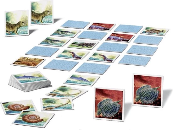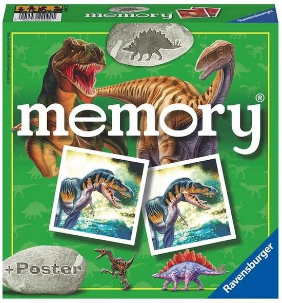 Memory Dinosaurier is leuk voor de hele familie. Het doel van het spel is om de beurt twee kaarten om te draaien totdat je twee identieke gevonden hebt. Geschikt voor kinderen vanaf 4 jaar.