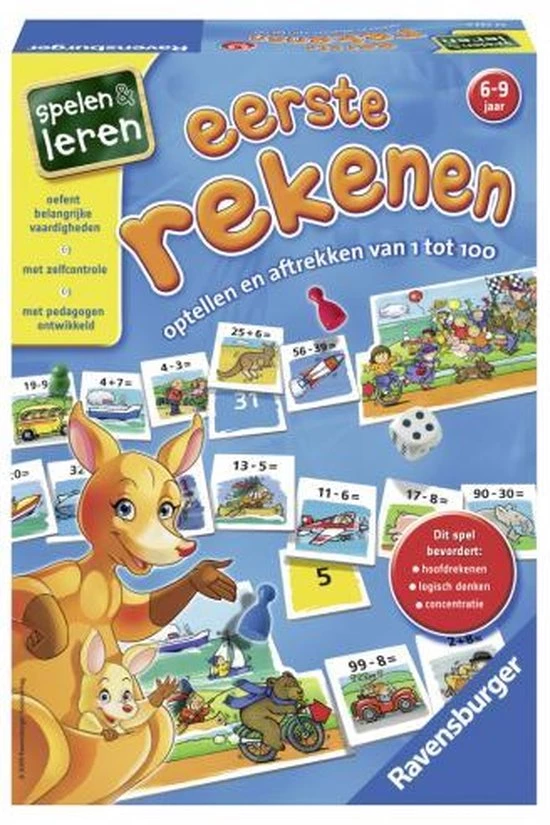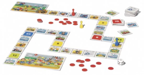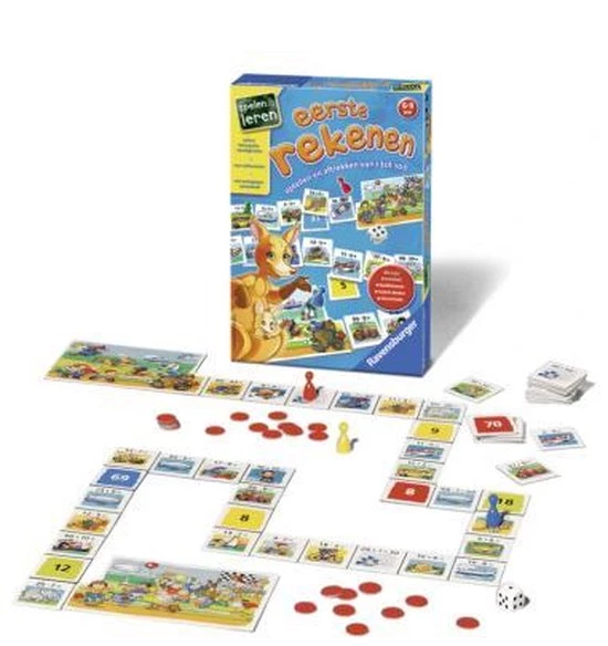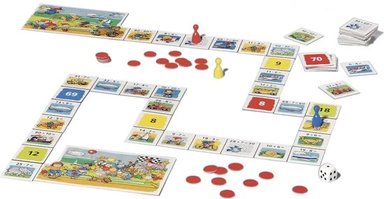 | Verpakkingsinhoud | 48, rekenkaartjes, 20, fiches, 1, startkaart, 1, finishkaart, 4, speelfiguren, 1, dobbelsteen, spelregels. |