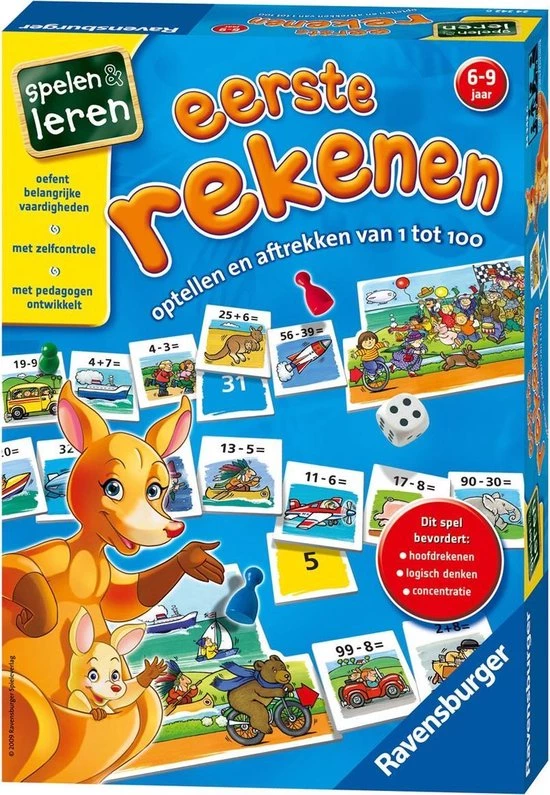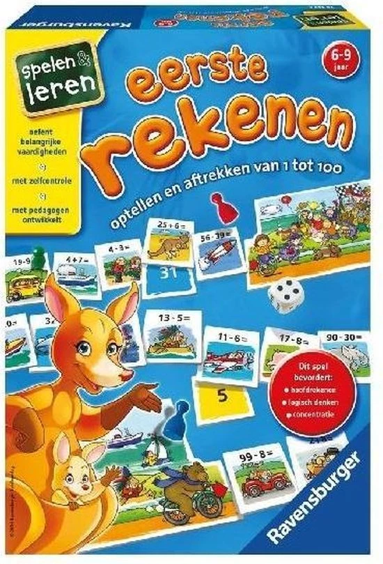 Spelenderwijs leren kinderen met dit spel optellen en aftrekken. Op het eerste niveau wordt gespeeld met getallen van 1 – 20, op het tweede niveau met getallen van 1 – 100. De uitkomsten op de achterkant van de kaartjes laten meteen zien of er goed gerekend is.