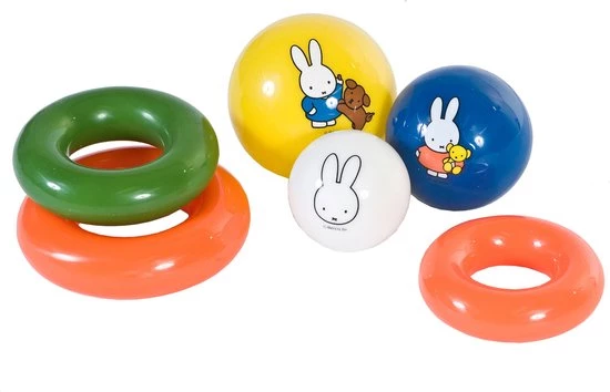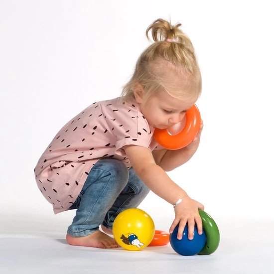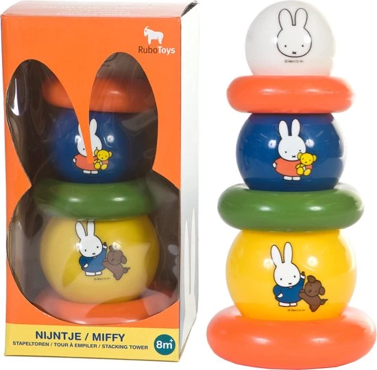 Nijntje Stapeltoren. Kom stapelen met nijntje! In welke volgorde plaats jij de balletjes? Stapeltoren, bestaande uit 3 ringen en 3 ballen. Hoogte: 24 cm, diameter 12,5 cm. Voorzien van kleurrijke nijntje afbeeldingen. Geschikt voor kinderen vanaf 8 maanden. Verpakt in full-colour doos.