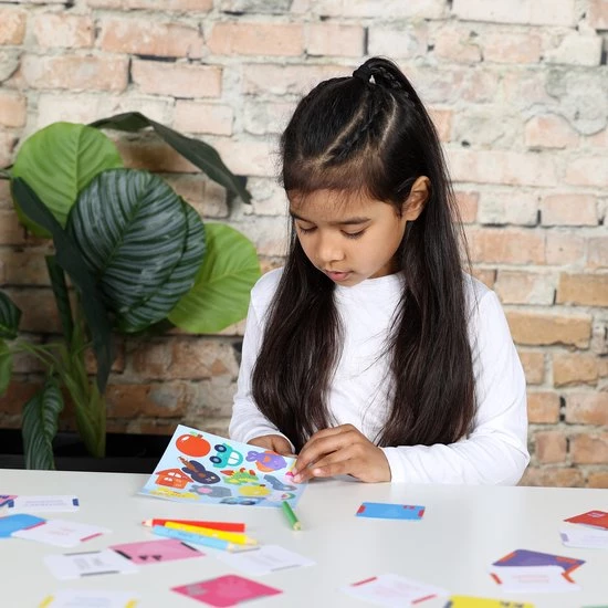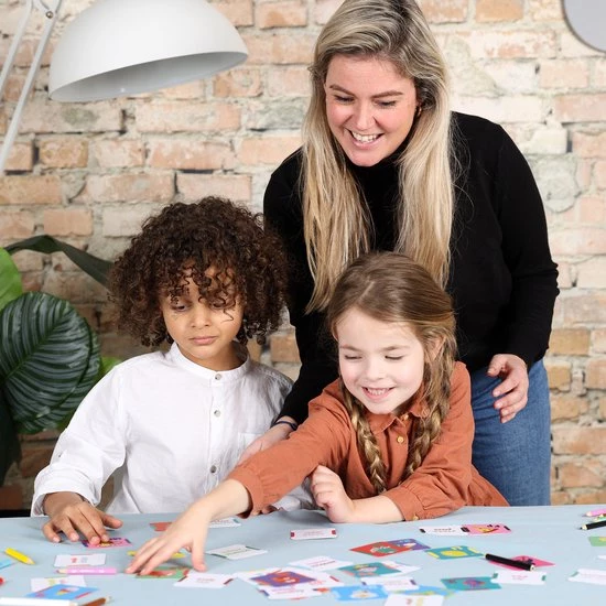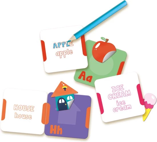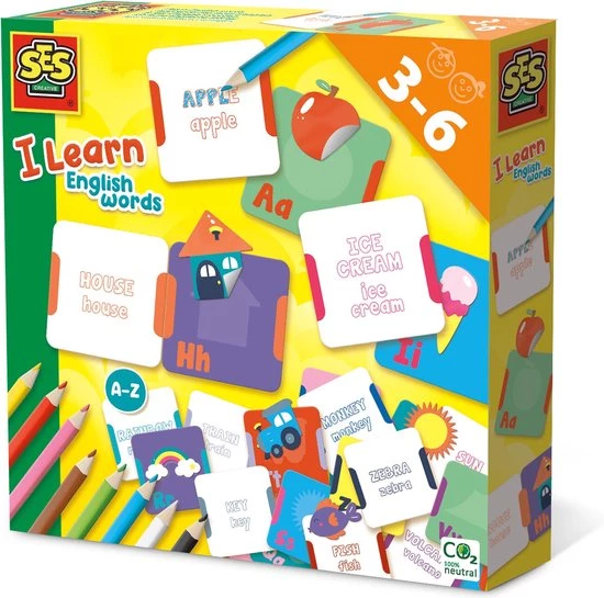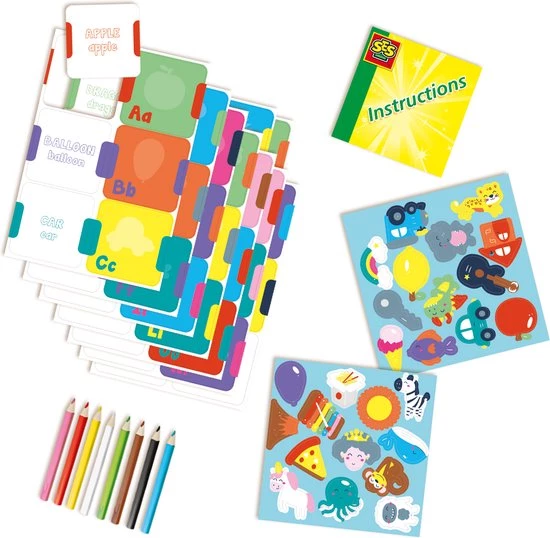 Wil jij alvast beginnen met het leren van Engelse woordjes? Dat kan dan met deze vrolijk geillustreerde set van Ik leer! Zoek de gekleurde stickers bij de juiste beginletter en zoek de kaartjes met woorden erbij. Leg de kaarten aan elkaar. Heb je het juiste woord? Dan kloppen de gekleurde controlevlakken. Door het inkleuren van de woorden ben je actief bezig met de spelling van de woorden en leer je stap voor stap steeds meer Engelse woorden.