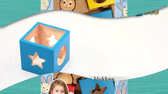 Inhoud: 60 opdrachtkaarten op 4 verschillende niveaus, 3 gekleurde blokken, een houten konijn, een foldertje met oplossingen (voor ouders of leerkrachten).