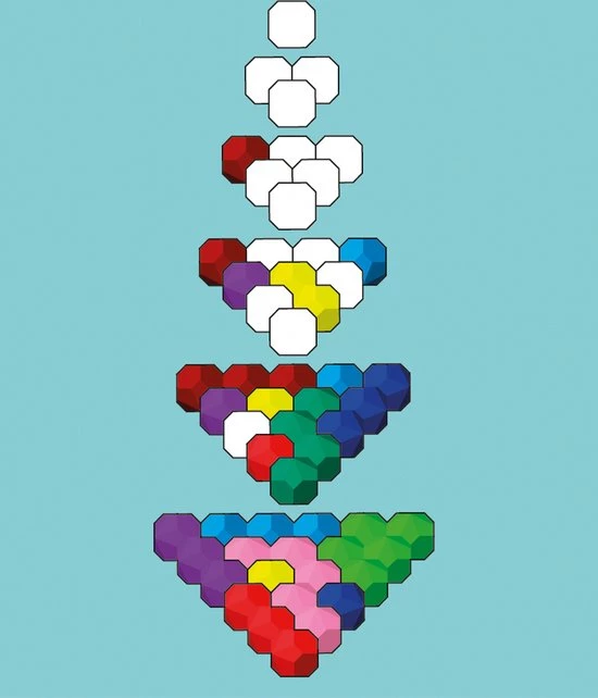 120 opdrachten in 3 verschillende spelvarianten, met 2D- en 3D-opdrachten! Vul de bovenkant met de zeshoekige puzzelstukken, bouw er driehoekige piramides, of zie kleurrijke vlinders verschijnen bij de opdrachten aan de onderkant van het speelbord. En dit alles in het vertrouwde, draagbare formaat. Een uitdagend puzzelspel waarbij uitdagingen opgelost moeten worden door de gekleurde steentjes in een bepaald patroon te leggen of bouwen. Pakket bevat 120 uitdagingen in verschillende moeilijkheidsgraden.