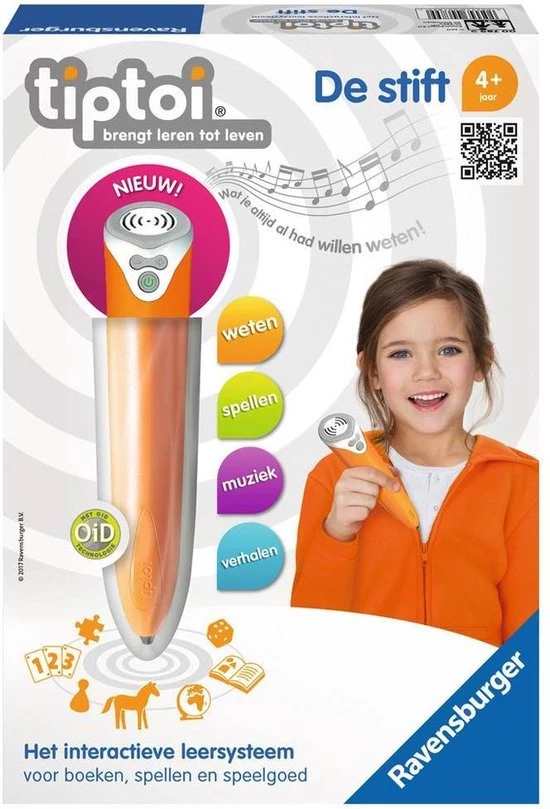Leren was nog nooit zo leuk en levendig als met tiptoi, het interactieve leersysteem van Ravensburger! De unieke stift voegt een compleet nieuwe dimensie toe aan een complete serie tiptoi producten: Tipt een kind op de tiptoi boeken, spellen en puzzels, dan komen deze op fascinerende wijze tot leven. Met de 4 rubrieken ontdekken, weten, vertellen en spelen bestuurd een kind de tiptoi beleving heel eenvoudig zelf!