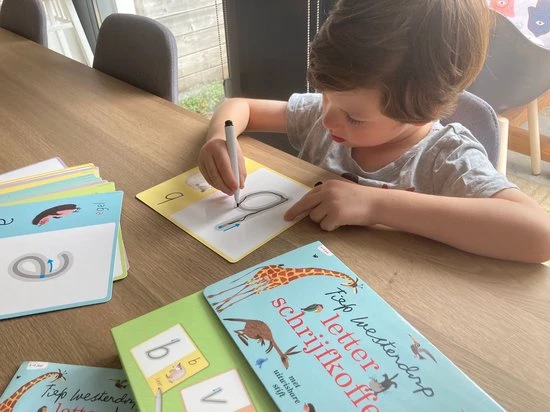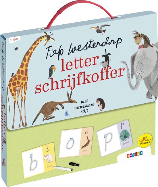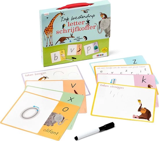 Met deze koffer leren kinderen spelenderwijs schrijven door het overtrekken van de letters van het alfabet. Op de schrijfkaarten staat een kleine letter, een grote letter, een dierenillustratie van Fiep Westendorp én een woord. Ook voor kinderen die al kunnen lezen, blijven de kaarten zo interessant. En er zijn voorbereidende schrijfopdrachten voor de allerkleinsten.