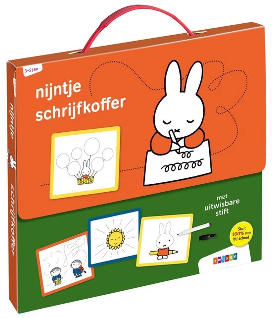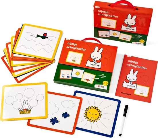 Met deze gezellige schrijfkoffer komen peuters en kleuters op een laagdrempelige manier in aanraking met schrijfbewegingen. Met de uitwisbare schrijfkaarten kunnen kinderen samen met nijntje eindeloos oefenen met het schrijven van rondjes, strepen en krullen. Deze schrijfbewegingen zijn gebaseerd op de vormen van letters. Een goede voorbereiding op het schrijven op school.