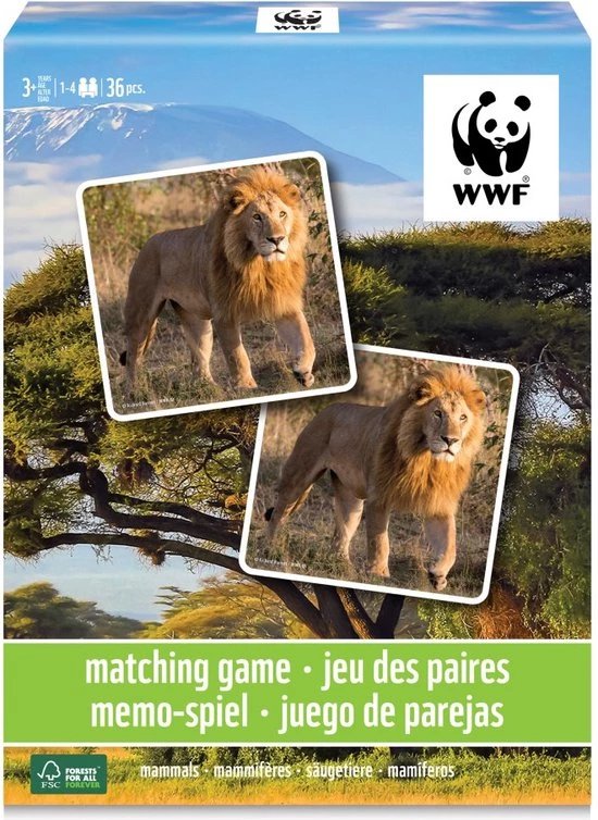 Het al oude memory spel in een nieuw jasje. Speciaal voor WWF is dit memory spel gemaakt met de mooiste foto’s van 18 verschillende zoogdieren. Van giraffe tot tijger en van ijsbeer tot orang-oetan.
