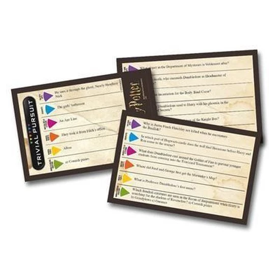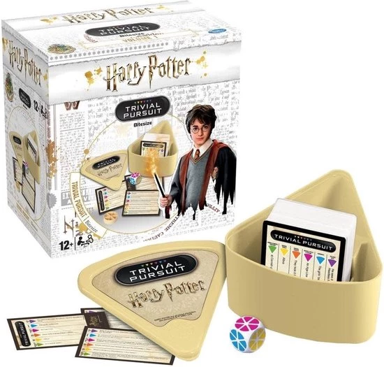 Deze Harry Potter versie van Trivial Pursuit bevat 600 vragen over Harry Potter, die zelfs de hersens van de grootste fan doen kraken. Er zijn 6 categorieën: Zweinstein (blauw), toverdranken en spreuken (roze), magische voorwerpen (oranje), tovenaars en heksen (geel), kwaadaardige krachten (paars) en dieren en magische wezens (groen). Beantwoord jij alle vragen juist? Daag je vrienden uit en laat hen zien hoeveel jij over Harry Potter weet!